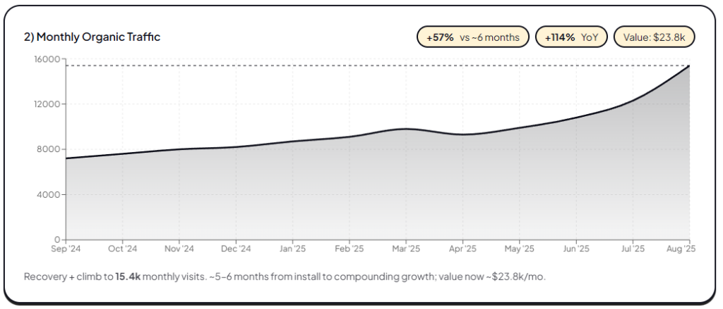 - 15.4K organic visits/month (57% growth vs. prior 6 months, 114% year-over-year)